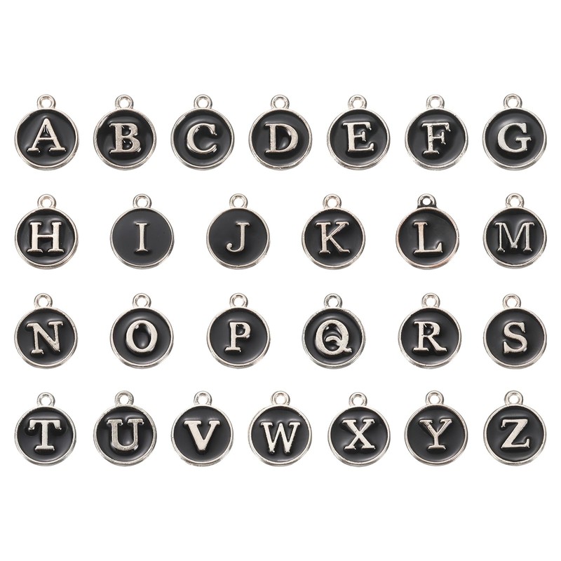 sourcing map Alphabet A-Z Enamel Letter Charm Jewelry Charm Enamel Initial Charm Silver Black Pendant Charm for Jewelry Making, Bracelet, Craft, Pack of 26