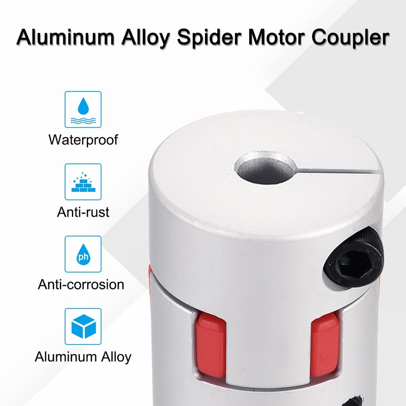 - This durable motor coupler connector, crafted from aviation aluminum with high corrosion resistance, hardness, and precision, features an anodized surface treatment for enhanced strength and durability, optimal for motors, 3D printers, and DIY models. The Spider Material design is capable of absorbing vibrations and is suitable for large torque transmission and longer service life.