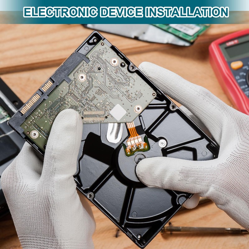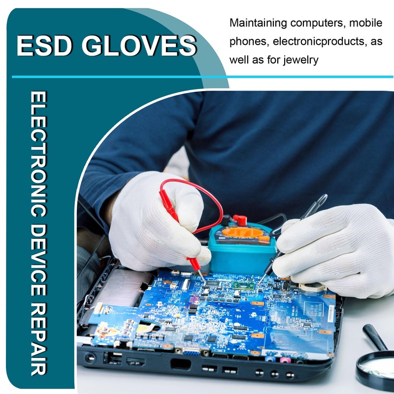 Anti-static gloves are suitable for installing and maintaining computers, mobile phones, electronic products, as well as for jewelry, laboratory, cleanroom use to prevent dust and debris entry.