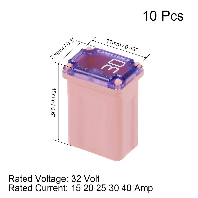 sourcing map Automotive Mini Cartridge Fuse Set 32V 15A 20A 25A 30A 40A Female Terminal for Car Truck Vehicle 10pcs