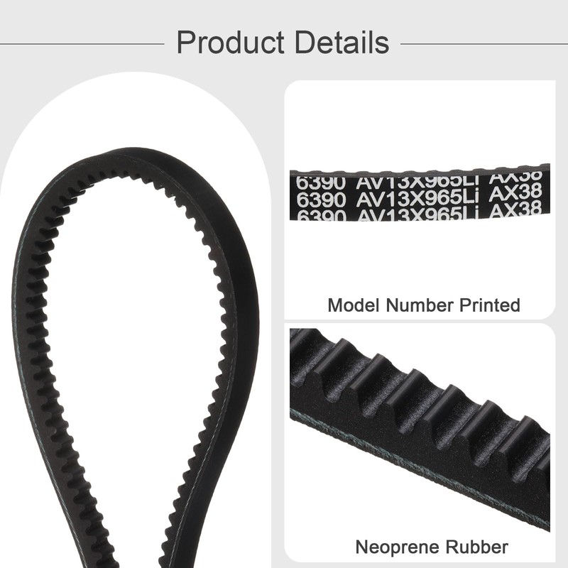 - Size - AX38 Classic Cogged V-Belt, Inside Circumference: 38 inch x Outside Circumference: 40 inch (1015mm) x Width: 1/2 inch (13mm) x Thickness: 0.315 inch (8mm)