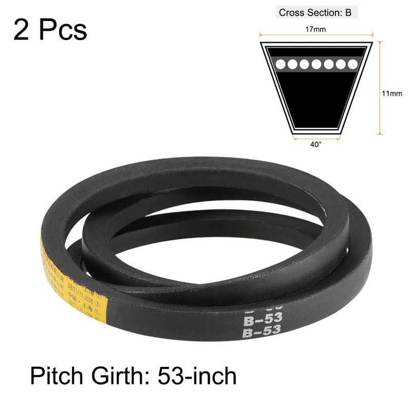 sourcing map B53 V-Belt, B Profile Rubber Drive Belt, 53 Inch Pitch Length, Pack of 2