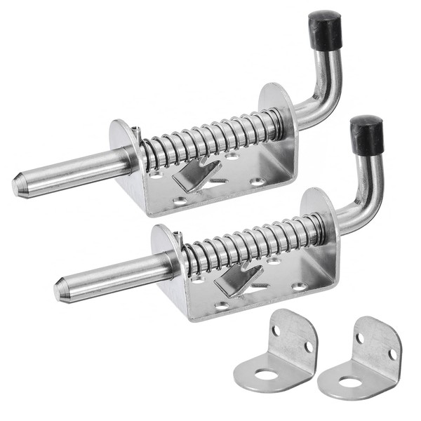 sourcing map Barrel Bolt Latch, 2Pcs 10x128mm - Stainless Steel Spring Loaded Gate Latch Pin with Keeper, for Trailer Doors Cabinets Chests Tailgate (Silver)