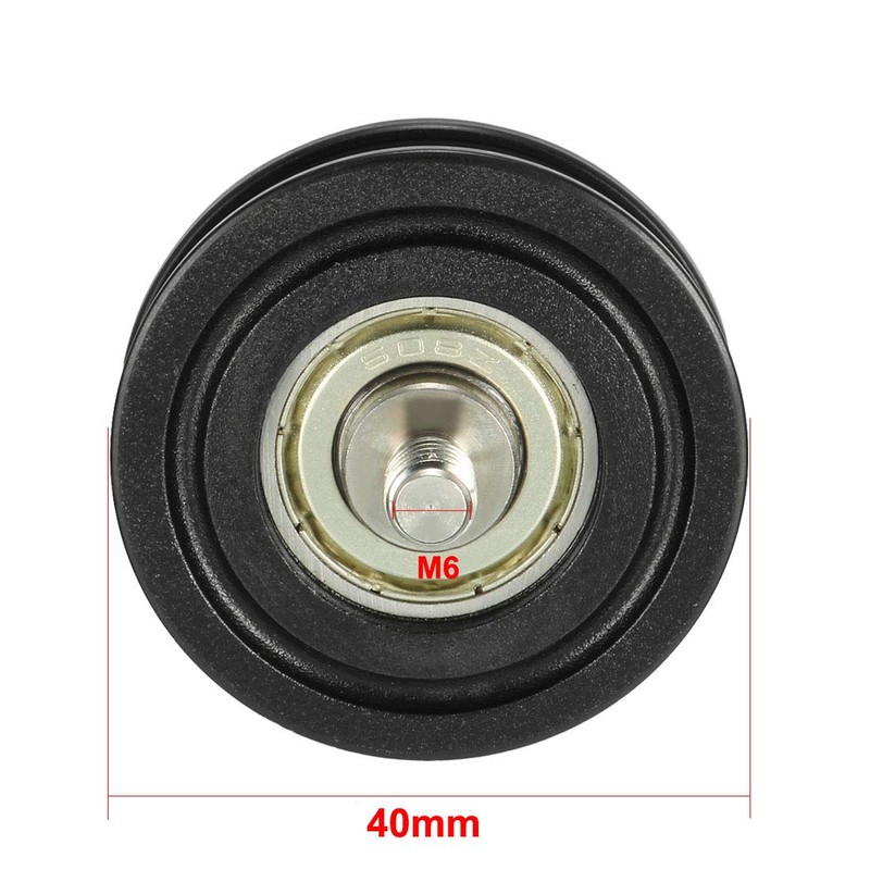 sourcing map Bearing Roller with Threaded Rod 40x10mm M6 U Groove for Sliding Door Track Guide, Nylon, Black