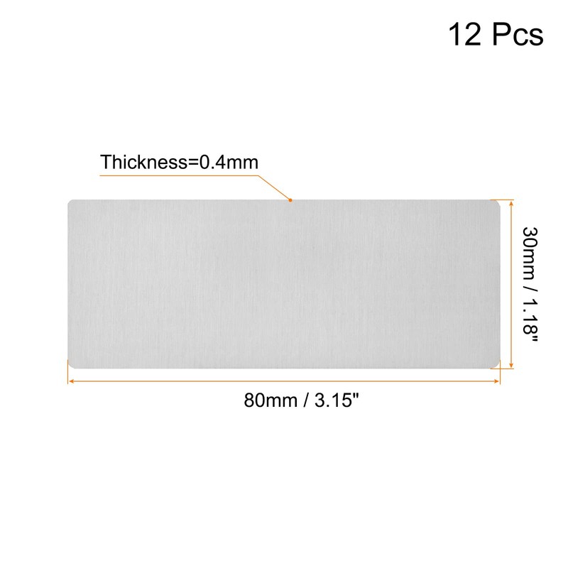 sourcing map Blank Metal Card, 3.1" x 1.2" Brushed 201 Stainless Steel Plate for DIY Laser Engraving Nameplate, 0.4mm Thick Silver Tone 12 Pcs