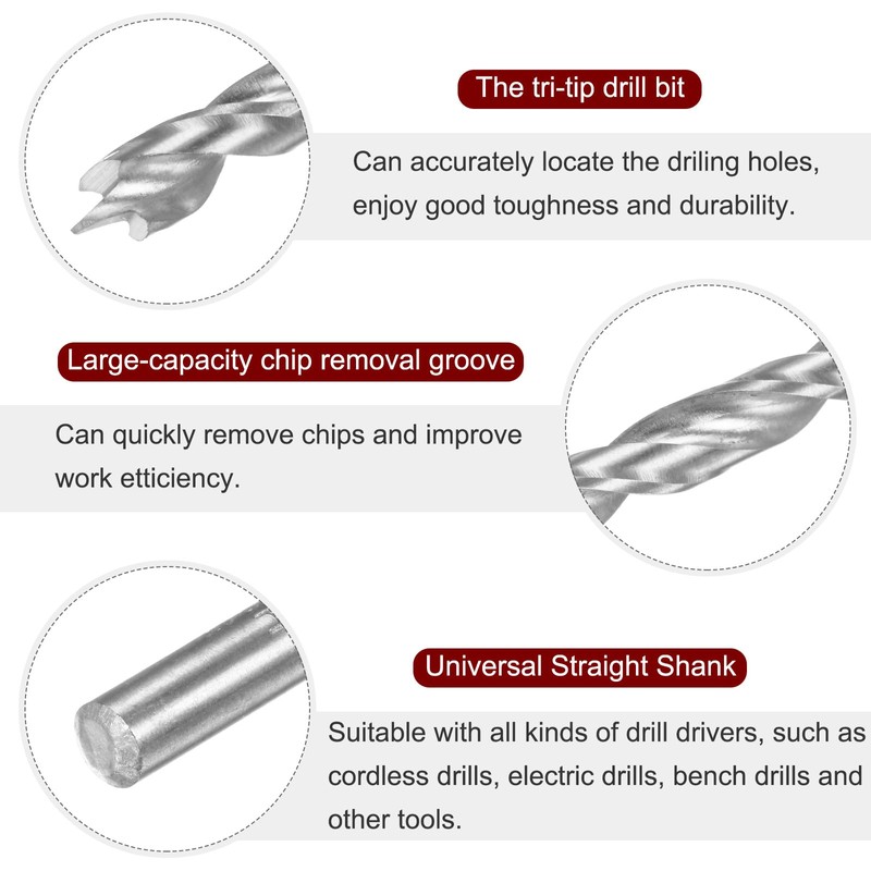 sourcing map Brad Point Drill Bit 5mm(13/64") Dia Straight Round Shank Drill ...