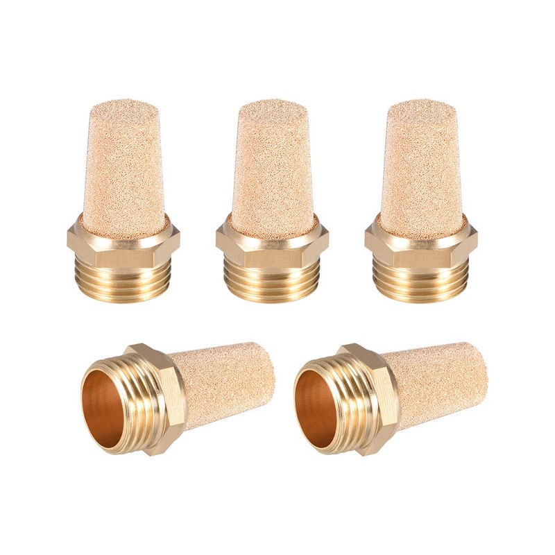sourcing map Brass Exhaust Silencer G1/2 Plug Thread Bronze Brass Housing Pack of 5