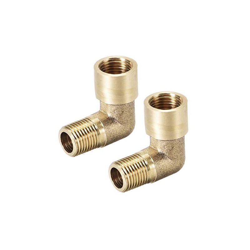 sourcing map Brass Pipe Fitting 90 Degree Elbow 1/8 PT Male X 1/8 PT Female 2pcs