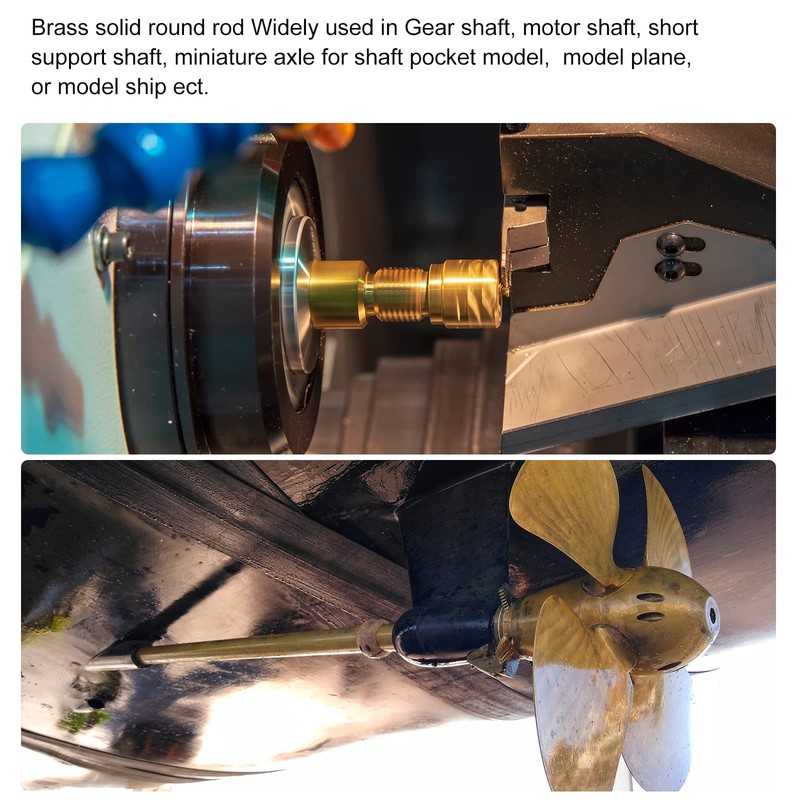 Solid brass round rod. Widely used in transmission shafts, motor shafts, short support shafts, miniature axles for wave pocket models, model aircraft or model ships, etc.