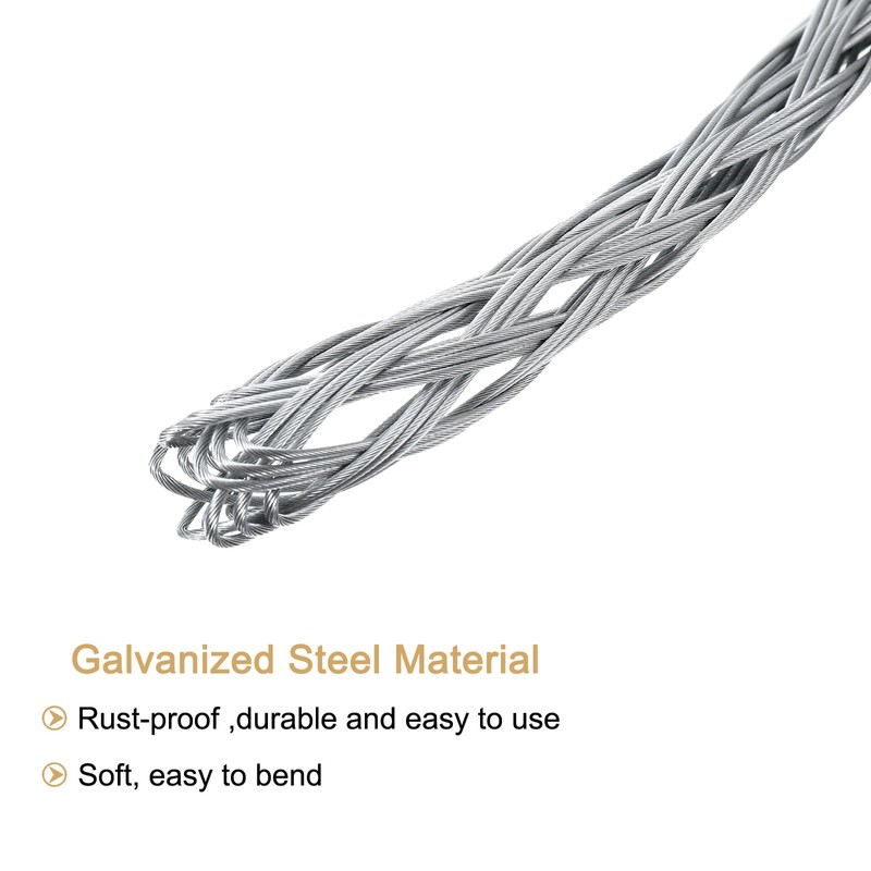 sourcing map Cable Pulling Grip 1.05m/3.4FT/41.34 Inch Wire Mesh Puller Socks Grip Anti-Slip Single Head Galvanizing Steel Wire Grips Net Cover Smooth for 18-25mm/0.71-0.98 Inch Cable(Silver)
