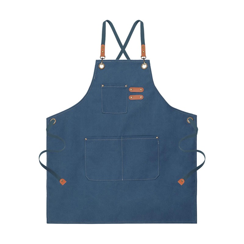 sourcing map Canvas Chef Aprons 78x68cm Adjustable Strap Cross Back Kitchen Cooking Apron with 3 Pockets for Men Women Chef, Blue