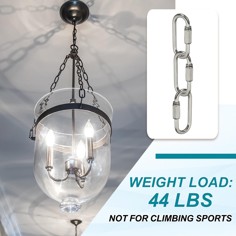 - Used to connect chains or fix accessories and is widely used in hanging chains of various chandeliers, candle lamps, crystal lamps, and other lamps. It can also be used for hanging plant baskets, billboards, signboards, backpacks, ropes, and various DIY accessories for securing items.