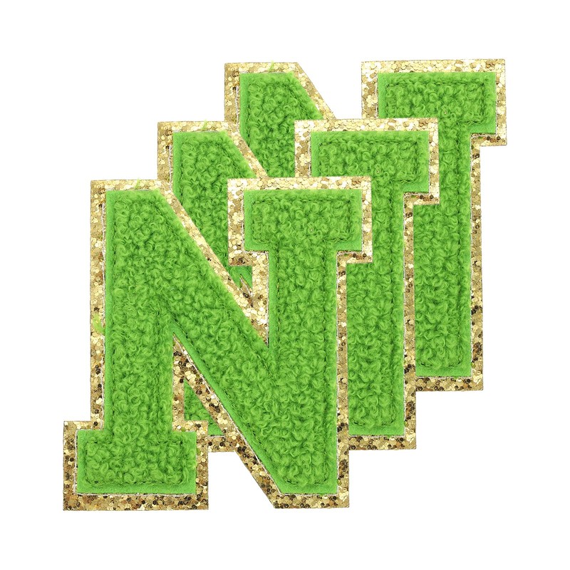 sourcing map Chenille Letters N Patches Large Size 80mm/3.15 Inch Iron-on Letters N Patches Golden Glitter Embroidered Patches for Clothing, Shoes, Hats, Backpacks Pack of 3(Green)