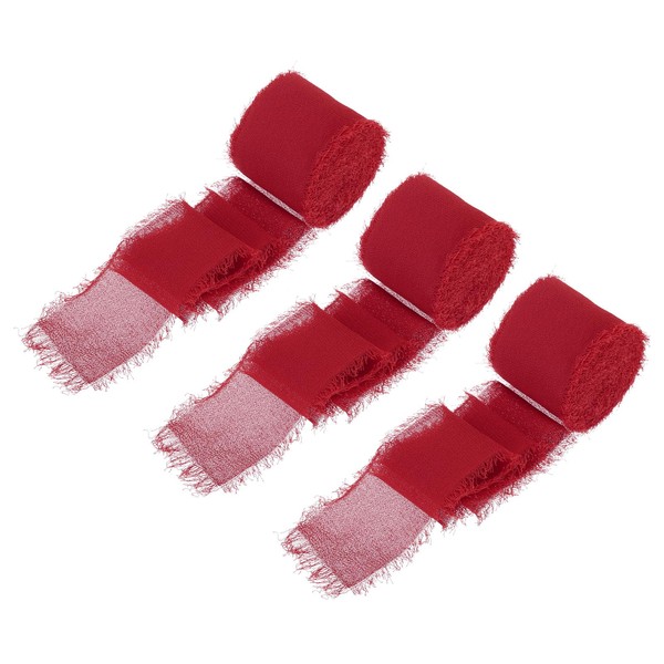 sourcing map Chiffon Ribbon, 1.5" x7 Yard Silk Ribbon Red Tulle Satin Fabric Ribbon for Gift Wrapping Invitations Bridal Bouquets,Pack of 3