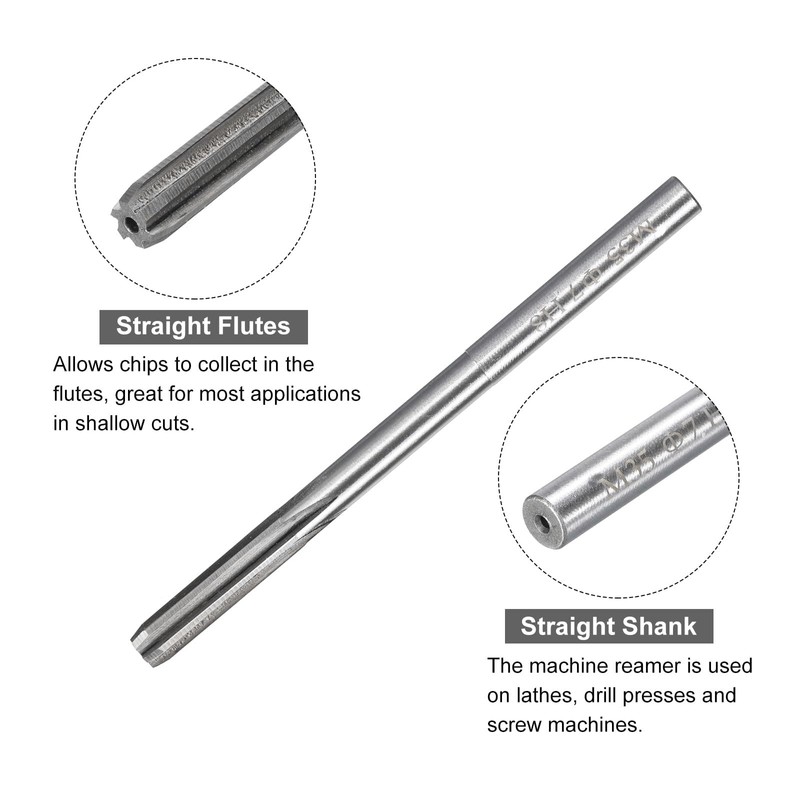 - Straight Flutes: Allows chips to collect in the flutes, great for most applications in shallow cuts. Can achieve the required roundness, straightness, and concentricity of the hole. Apply a cutting fluid or lubricant to the reamer and workpiece before starting the reaming process.