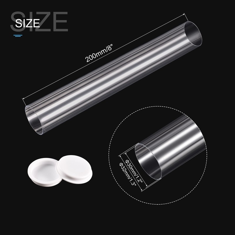Pack of 1 Storage Tubing, 2 x Removable Lids; Length : 200mm/8inch; Inner Diameter: 30mm/1.2inch; Outer Diameter: 32mm/1.3inch.
