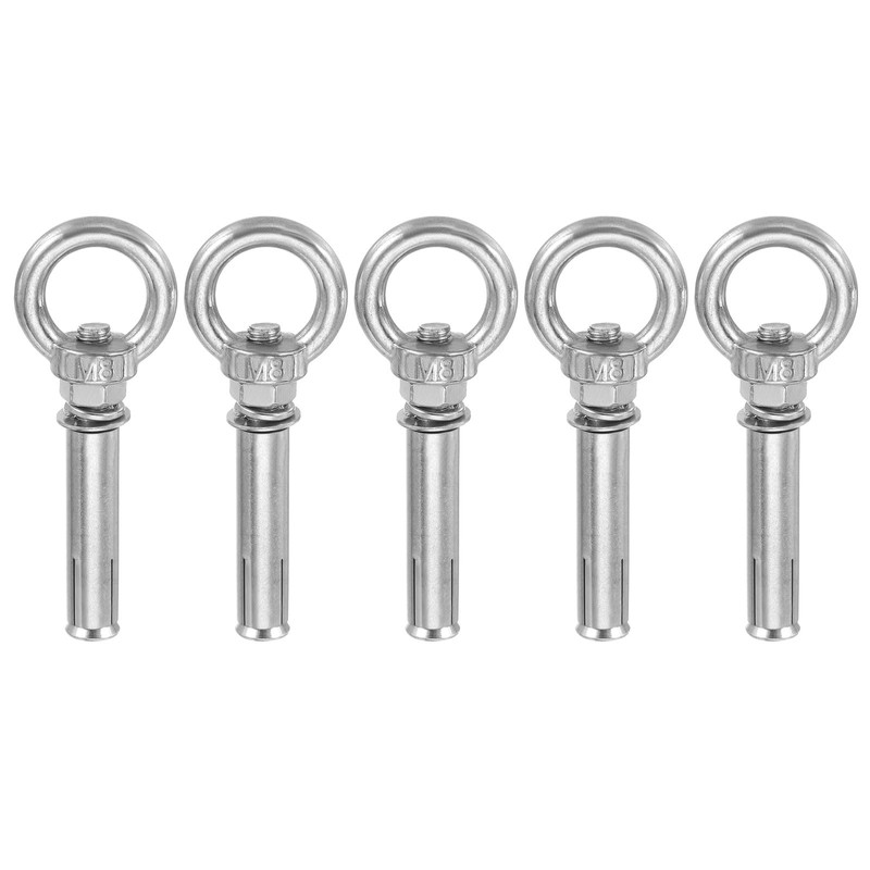 sourcing map Concrete Eye Bolt Expansion Eyebolt M8x70mm 304 Stainless Steel Expansion Lifting Bolts Ring Screw Eye for Ceiling Concrete Wall Brick Masonry, Pack of 5