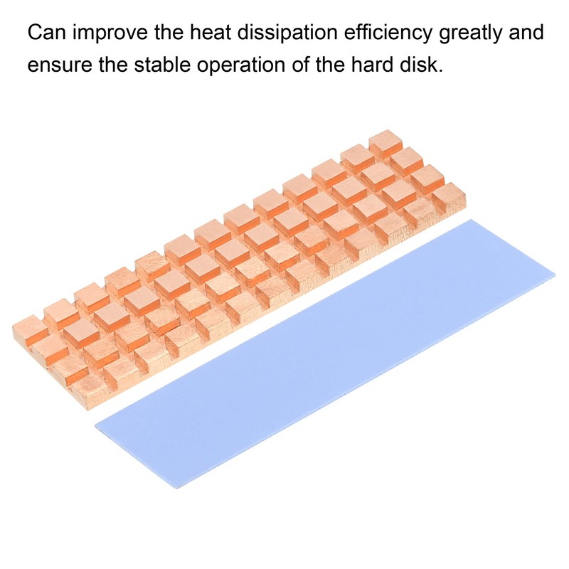 - Made of copper material, can improve the heat dissipation efficiency greatly and ensure the stable operation of the hard disk. The heatsink can achieve dual heat dissipation with the thermal pads.