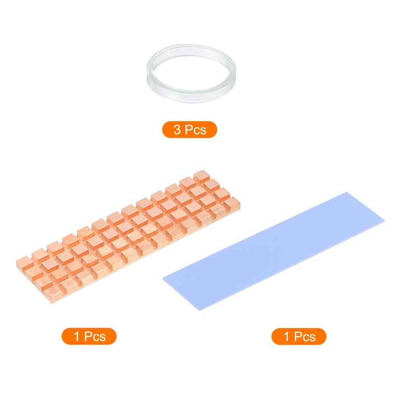 - Heatsink Size: 70x20x3mm/2.75x0.79x0.12inch; In the package of: 1 x Copper Heatsink; 1 x Pre-Cut Thermal Pad(1mm thick); 3 x Rubber Rings.