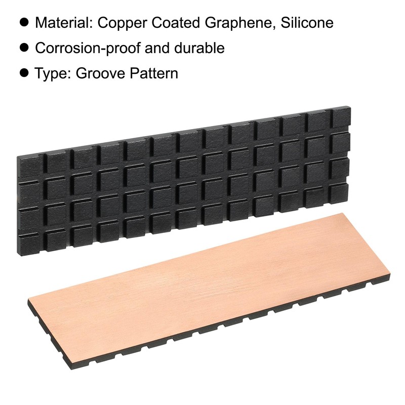 - Heatsink Size: 70x20x2mm/2.75x0.79x0.08inch; In the package of: 1 x Copper Heatsink; 1 x Pre-Cut Thermal Pad(1mm thick); 3 x Rubber Rings.