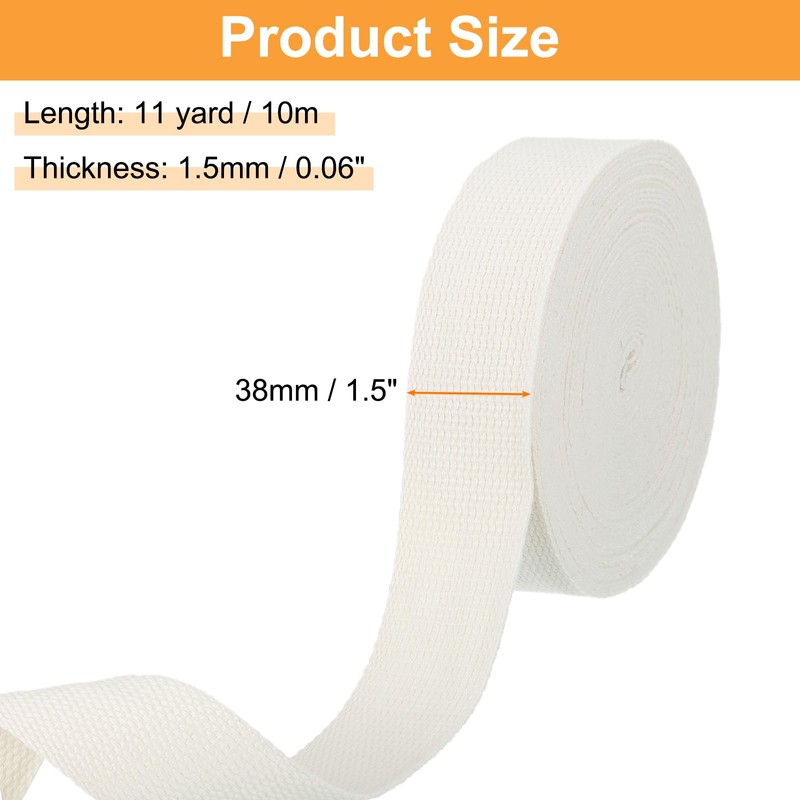 - Size - You will receive a roll of cotton webbing tape that is 11 yards (10m) in length, 1.5inch (38mm) in width and 0.06inch (1.5mm) in thickness.