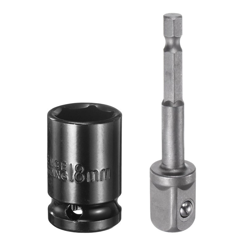• Size - 6-Point Socket: metric socket size: 18mm, square drive: 1/2", total length: 38mm / 1.5"; Socket Adapter: hex shank: 1/4"; square drive: 1/2"; total length: 73mm / 2.87".