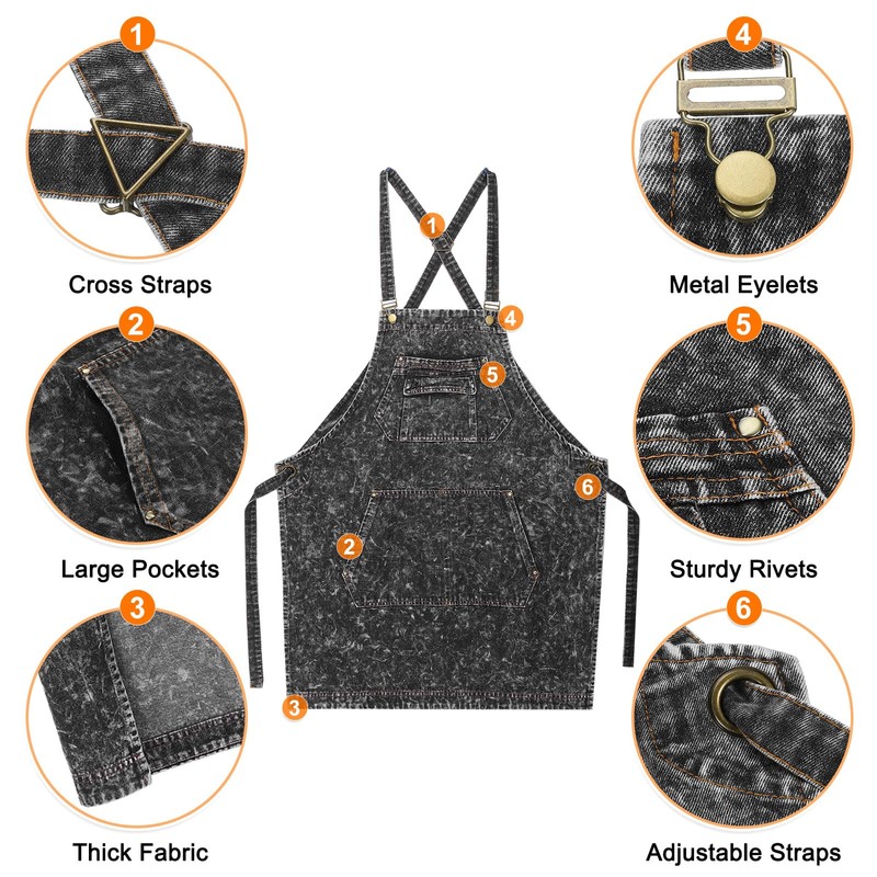 - Material - The work aprons for men and women are made of thick and durable denim fabric, solid brass grommets and rivets, the fabric is strong, wear-resistant and not easy to tear