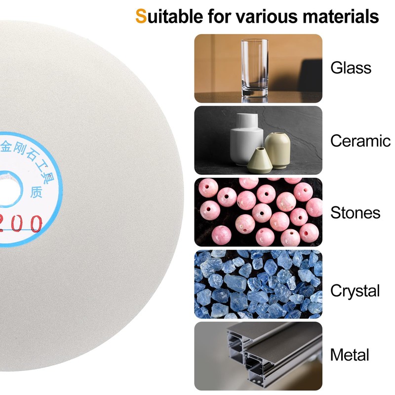 - Great Cutting and Polishing Performance - The diamond grinding wheel is designed for sanding and polishing various materials such as ceramics, glass, stones, marble, crystal, agate, tungsten steel, carbide, metals, jewelry, jade, etc.