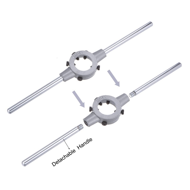 The handle of the dies can help repair broken bolts and threads, or easily remove bolts and threaded rods when used with round dies. With adjustable screws, the die can securely hold around the dies and is easy to use. Made of 45# carbon steel, it has a high hardness, strength and resistance to deformation than ordinary A3 steel.