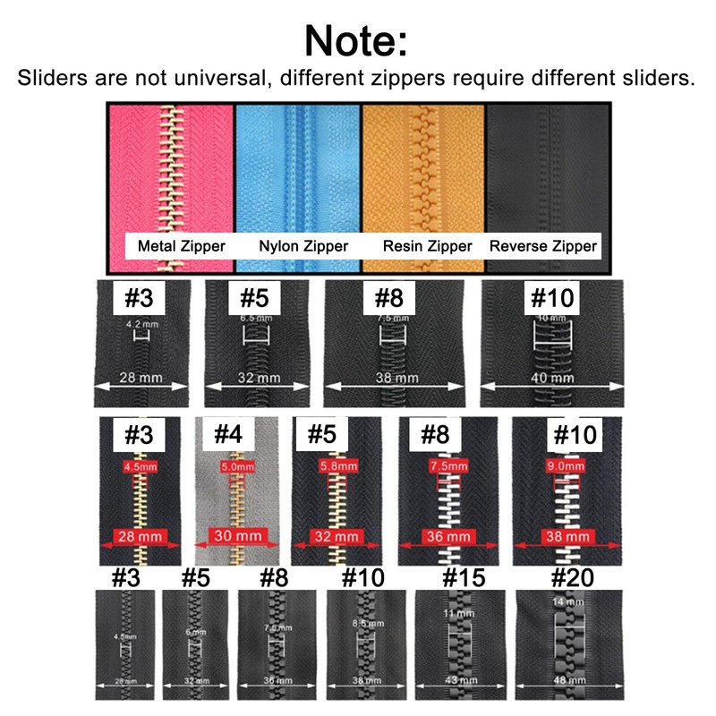 - SIZE AVAILABLE - Check the size and color first: We have #3 #5 #8 #10 for you to choose from for repairing dual-sided zippers on coats or jackets. Please check the zipper size before ordering