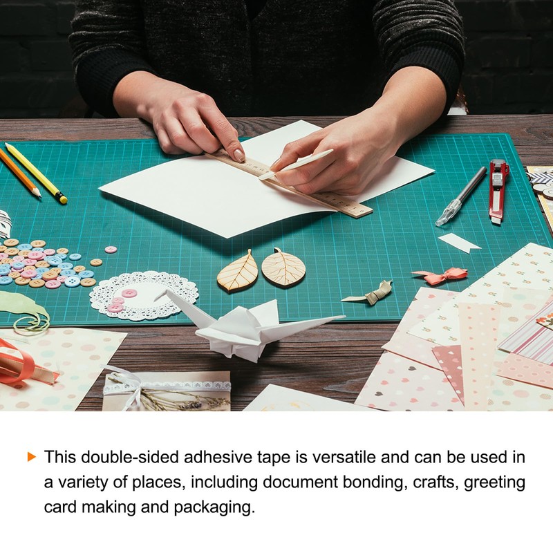 This double-sided adhesive tape is versatile and can be used in a variety of places, including document bonding, crafts, greeting card making and packaging.