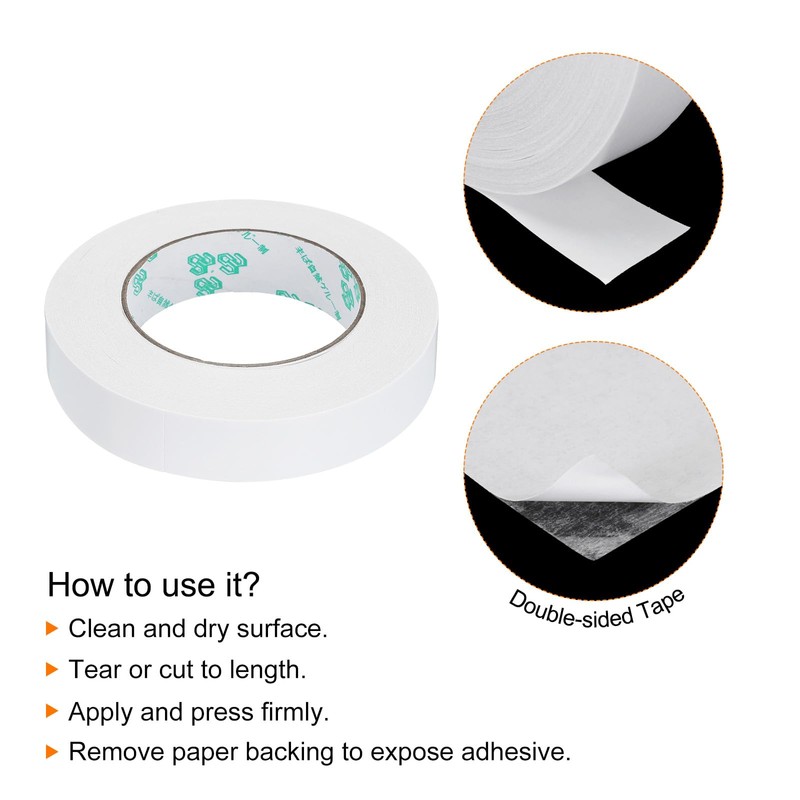 - The Tape is sticky in double sides, easy to stick and tear, suit for most surfaces and occasions such as fabrics, paper, glass, wood, wall, plastic, etc.