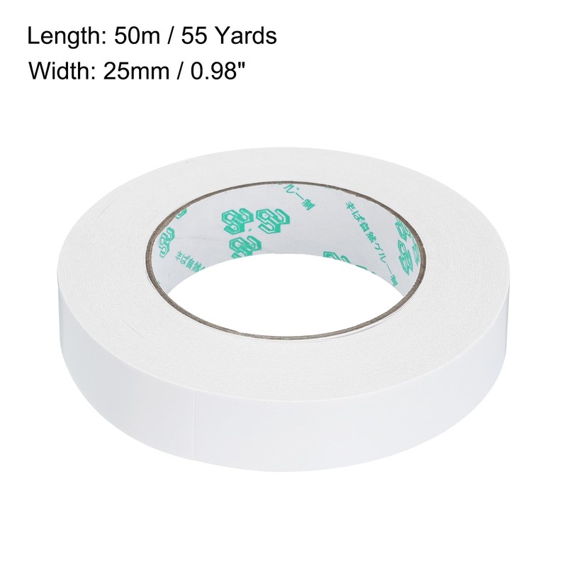 - Length: 50 m/55 yards;Width: 25 mm/0.98 inch;Style: Double-sided Tape;Material: Cotton Paper;Color: White;In the package of: 1 Pcs x Double-sided tape