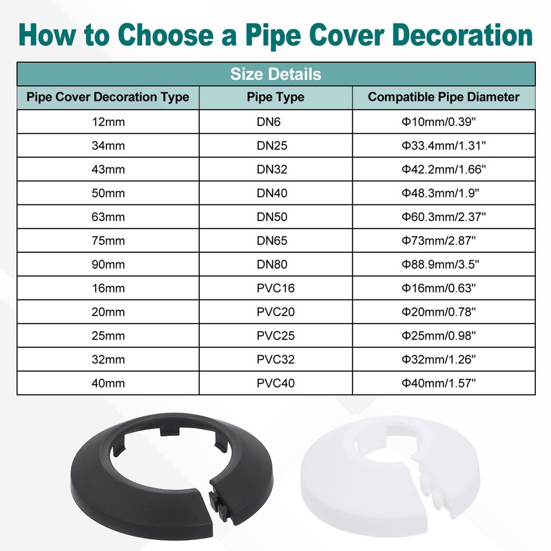- Scope of Application: Find the versatility of our Plumbing Cover Plates for various uses, including heating pipes, water pipes, gas pipes, angle valves, faucets, radiators, drain pipes, etc. Whether for residential renovations or commercial installations, this water pipe decoration offers a practical and stylish way to upgrade and concealing unsightly pipes