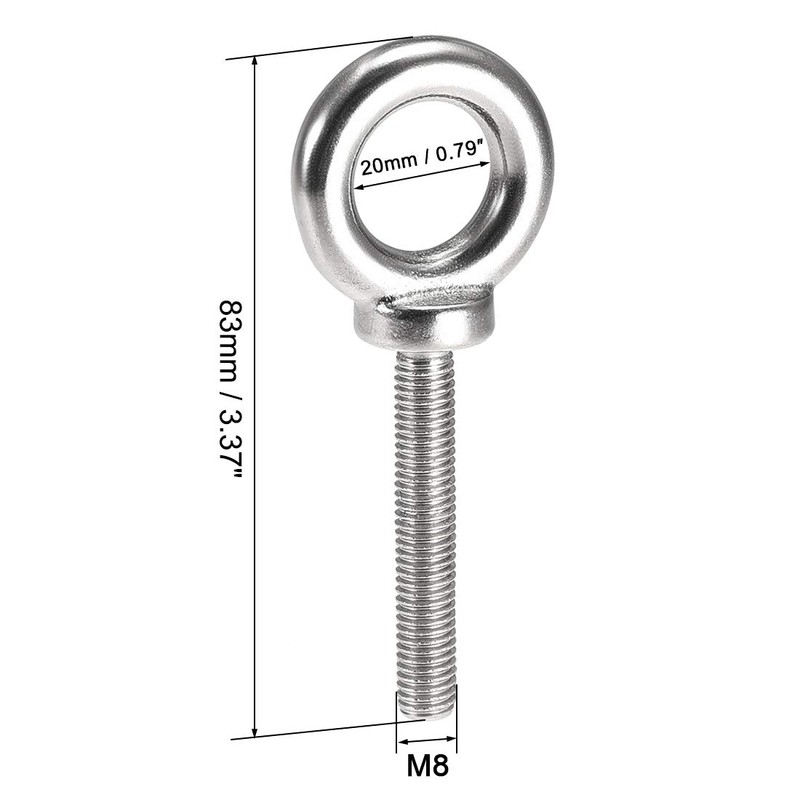 sourcing map Eye Bolt M8 x 50 mm Male Thread 35 mm AD 304 Stainless Steel for Hanging Pack of 2