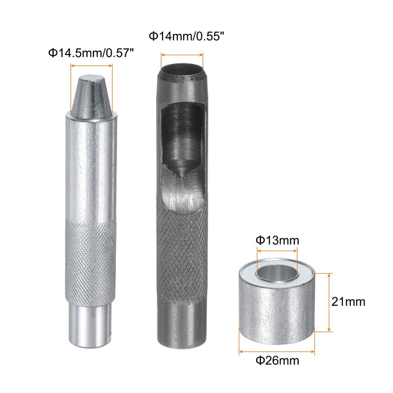 - Size - Leather punch size: 14mm/0.55"; Mandrel Size: 14.5mm/0.57"; The base size:26mm*21mm (Diameter*Height),the inner diameter: 13mm.