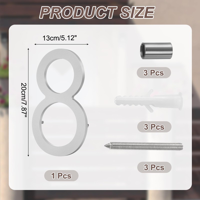 - [What You Get] - The package comes with 1 piece of outside house number with 3 pcs of screws, 3 pcs of expansion tubes, 3 pcs of cylindrical tubes and 1 pcs of positioning paper. The height is 20cm/7.87inch, width is 13cm/5.12inch. Use these outdoor house numbers to reduce the risk of missing express deliveries or visitors getting lost.