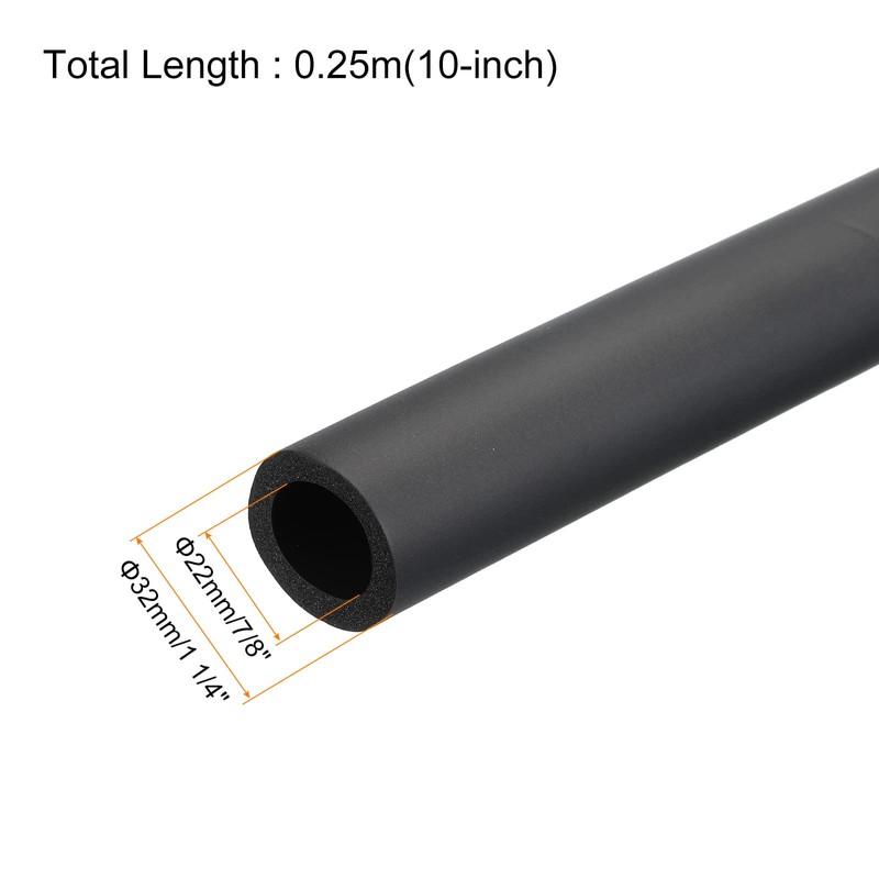 - Foam grip tubing, is in the size of: 22 mm (7/8 inch) inner diameter, 32 mm (1 1/4 inch) outer diameter, 5 mm (3/16 inch) wall thickness, 0.25 m (10 inch) total length