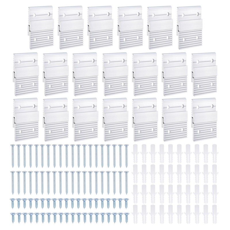 - Package Included - 20 pairs french cleat picture hanger; 40 pieces self-tapping screws; 40 pieces self drilling screw; 40pieces expansion rubber plugs; Material: Aluminum: Size: 50 mm x 6 mm (L*H);