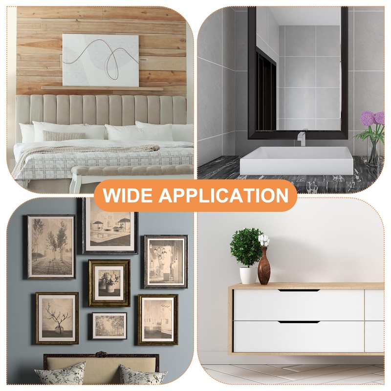 Widely used to hang mirrors, panels, shelves, headboards, cabinets, whiteboards, and artwork frames.