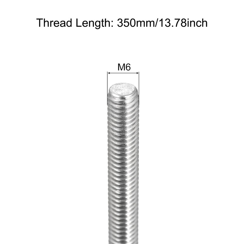 • The fully threaded rod, we provide here, are in the size of: Material: 304 Stainless Steel; Color: Silver Tone; Thread size: M6; Thread Length: 350mm/13.78inch; Thread Pitch: 1mm/0.039inch