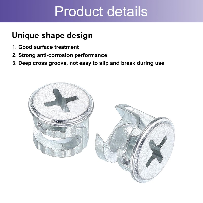 - Features: Furniture locking nut has deep cross slotted, not easy to slip and break during use, usually matched with a pre-inserted nut and positioning dowel screw (not included in the package) during the connection process