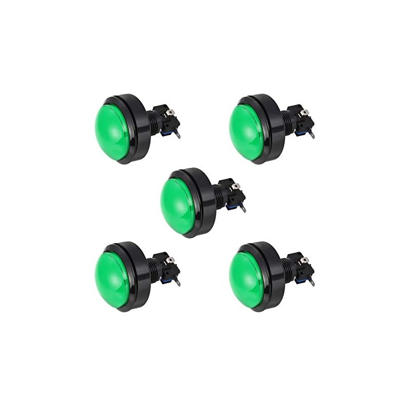 sourcing map Game Push Button 62mm Round 12V LED Illuminated Push Button Switch with Micro Switch for Arcade Video Games Green 5pcs