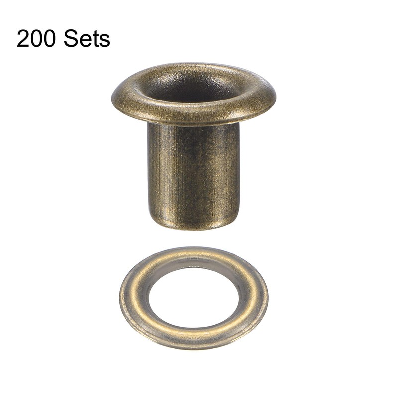 sourcing map Grommets Eyelets with Washers Kit, 8 x 4 x 7mm Copper Grommet Chrome Plated for DIY or Craft Projects Bronze Tone 200 Set