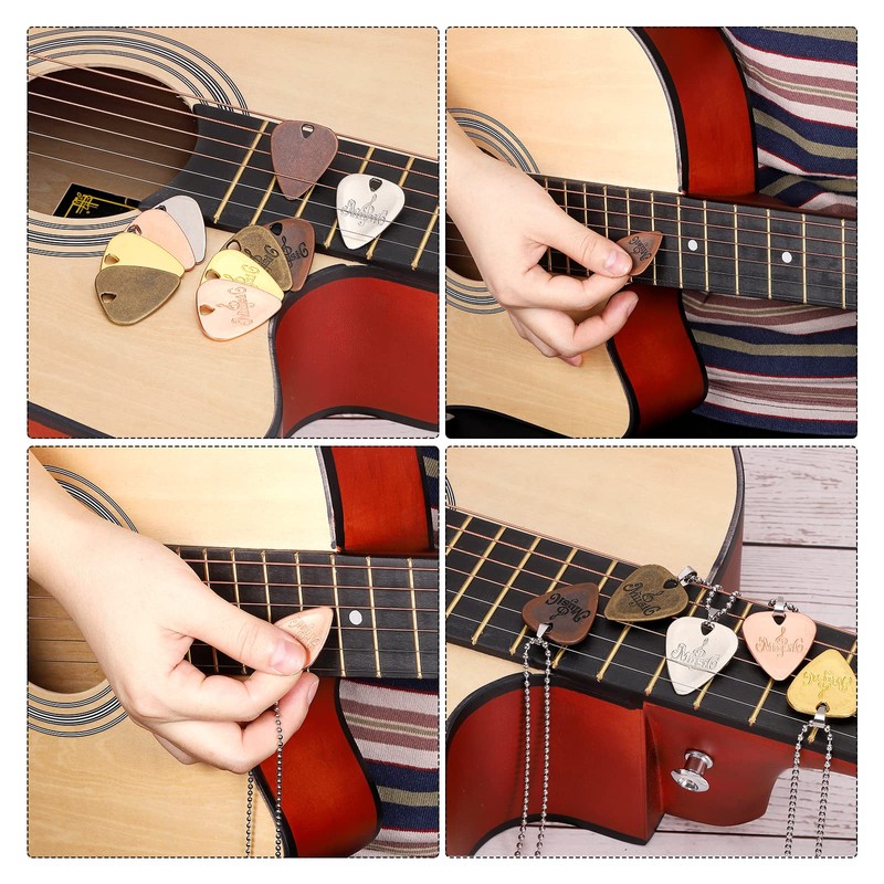 - The guitar pick is made of metal and is suitable for your acoustic guitar, electric guitar and bass guitar.