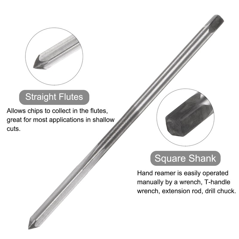 - Hand Reamer Size: Cutting diameter: 2.5mm / 0.098"; tolerance: H8; cutting flute length: 16mm / 0.63"; shank diameter: 2.5mm / 0.098"; shank length: 25mm / 0.984"; overall length: 57mm / 2.244"; style: straight flute, square shank