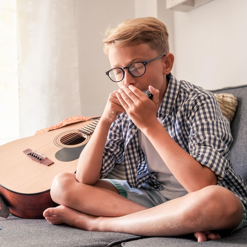 The harmonica is very easy to use. You only need to blow or breathe in with your mouth to produce sound.