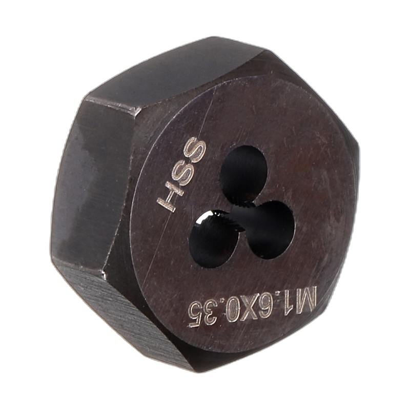 sourcing map Hex Threading Die M1.6 x 0.35 Metric Thread Right Hand High Speed Steel Rethreading Fixed Die Screw Cutting Tapping Repair Tool