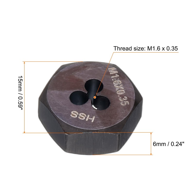 sourcing map Hex Threading Die M1.6 x 0.35 Metric Thread Right Hand High Spee...