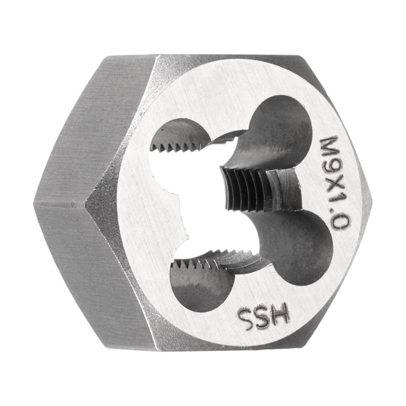 sourcing map Hex Threading Die M9 x 1 Metric Thread Right Hand High Speed Steel Rethreading Fixed Die Screw Cutting Tapping Repair Tool